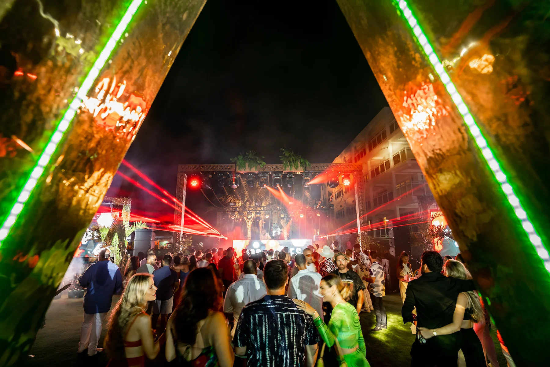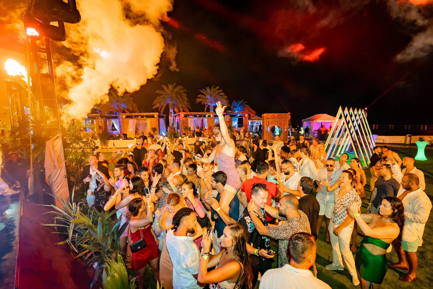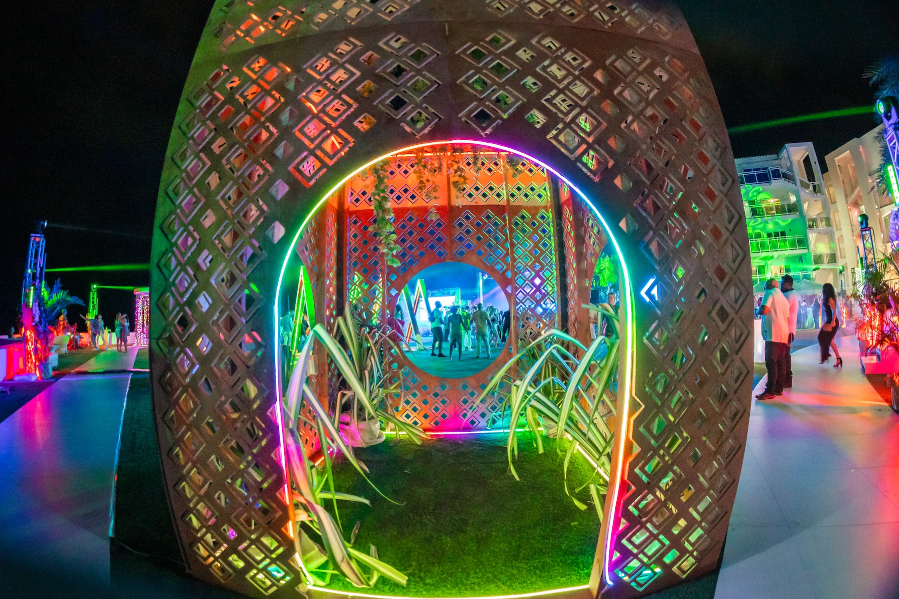 A private birthday on the island of St. Martin that needed to feel like a destination within a destination. The client wanted a Tulum-inspired event space, top-tier dance music talent, and a night their guests would never forget. We designed, built, and installed the immersive scenic and lighting structures where guests danced to some of the biggest names in dance music. This experience was not short of having to navigate the difficulties of unpredictable tropical weather, as there was a true challenge in finding every inventive solution in a short span of time - making sure the show went on was paramount.